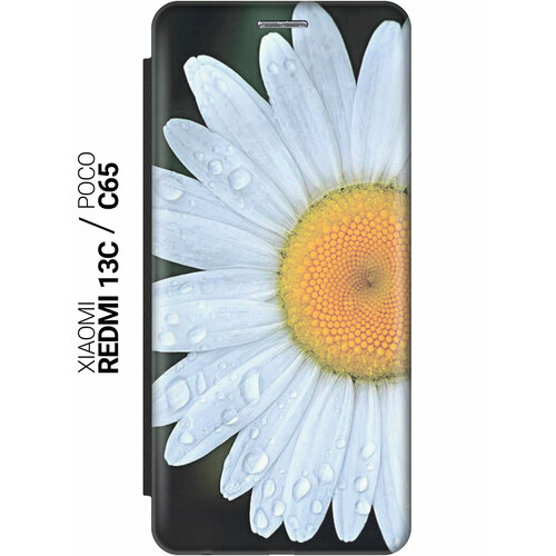 Чехол-книжка на Xiaomi Redmi 13C / Poco C65 / Сяоми Редми 13С / Поко С65 с рисунком "Ромашка" черный