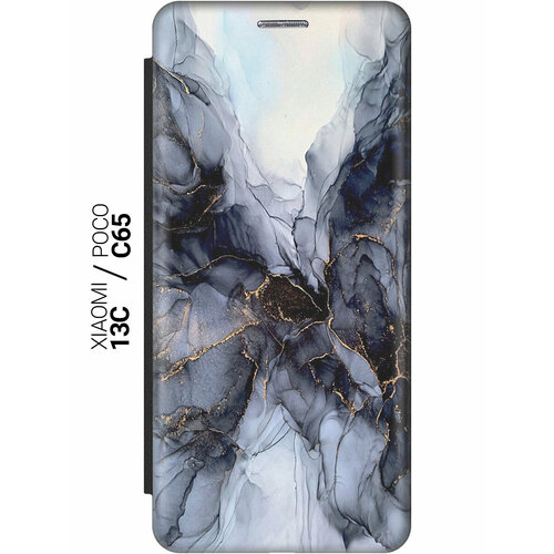 Чехол-книжка на Xiaomi Redmi 13C / Poco C65 / Сяоми Редми 13С / Поко С65 с рисунком "Черно-белый мрамор" черный