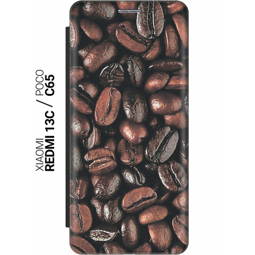 Чехол-книжка на Xiaomi Redmi 13C / Poco C65 / Сяоми Редми 13С / Поко С65 с рисунком "Зерна кофе" черный
