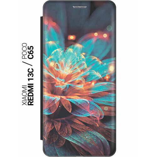Чехол-книжка на Xiaomi Redmi 13C / Poco C65 / Сяоми Редми 13С / Поко С65 с рисунком "Магический цветок" черный