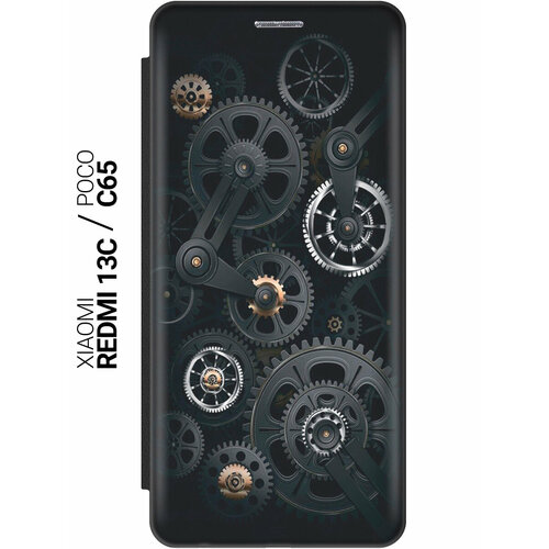 Чехол-книжка на Xiaomi Redmi 13C / Poco C65 / Сяоми Редми 13С / Поко С65 с рисунком "Механизм" черный