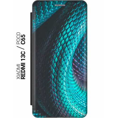 Чехол-книжка на Xiaomi Redmi 13C / Poco C65 / Сяоми Редми 13С / Поко С65 с рисунком "Змеиная кожа" черный