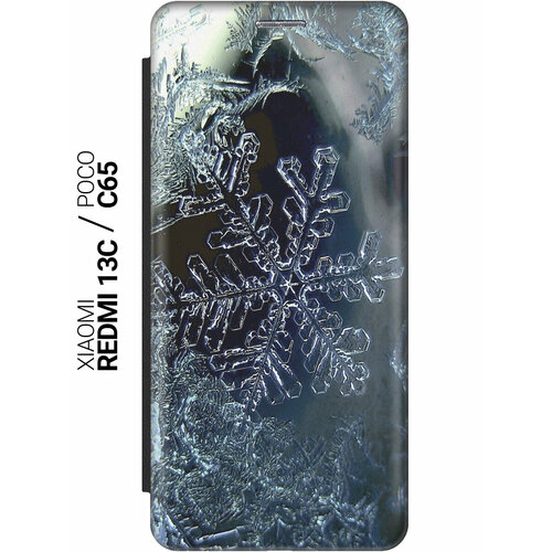 Чехол-книжка на Xiaomi Redmi 13C / Poco C65 / Сяоми Редми 13С / Поко С65 с рисунком "Макро снежинка" черный