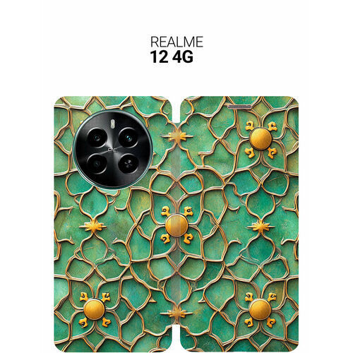 Чехол-книжка на Realme 12 4g с принтом "Золотистый узор" золотой