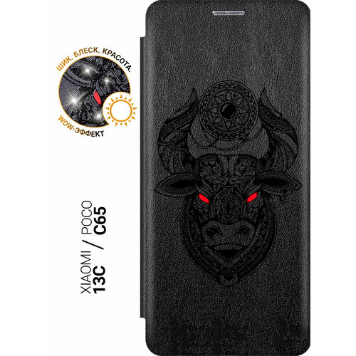 Чехол-книжка на Xiaomi Redmi 13C / Poco C65 / Сяоми Редми 13С / Поко С65 с рисунком "Grand Bull" черный