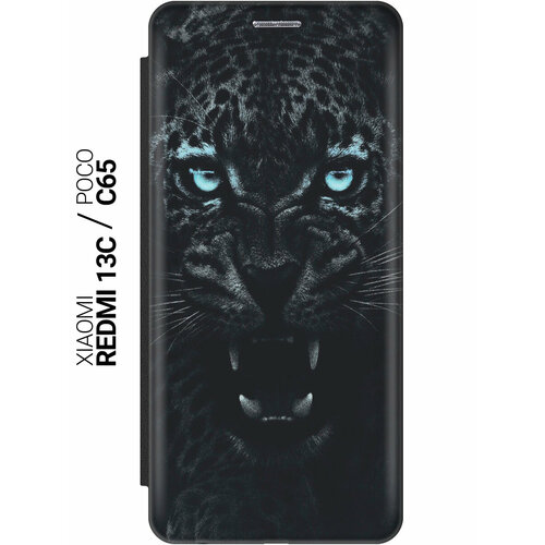 Чехол-книжка на Xiaomi Redmi 13C / Poco C65 / Сяоми Редми 13С / Поко С65 с рисунком "Голубоглазая пантера" черный