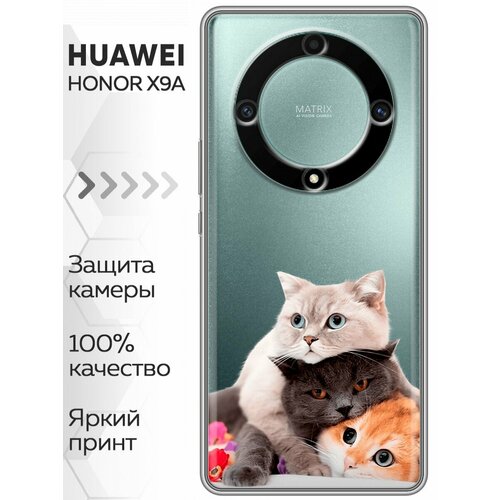 Полупрозрачный дизайнерский силиконовый чехол для Хонор Х9а / Huawei Honor X9a Кошки