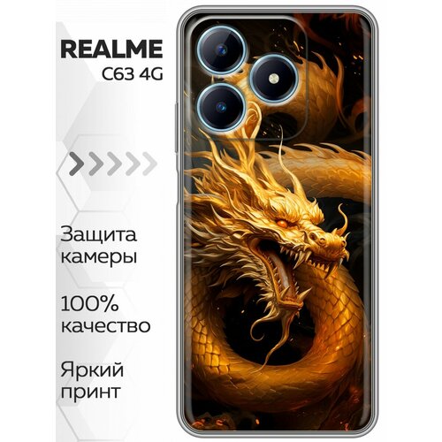Чехол для Realme C63, Note 60, 60X Дракон золотой (Реалми С63, Нот 60, Ноут 60х)