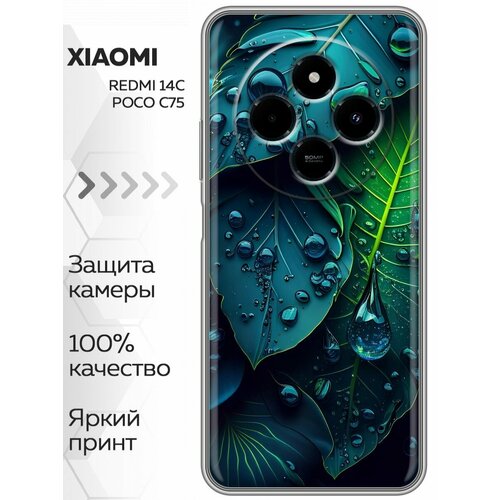 Чехол для Xiaomi Redmi 14C 4g, Poco C75 с принтом Зеленые листья (Ксиоми Редми 14С 4g, Поко С75)
