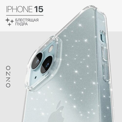 Силиконовый чехол на Айфон 15 / iPhone 15 бампер защитный, прозрачный с блестками