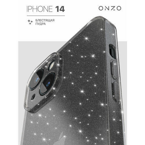 Чехол на Айфон 14 темно-прозрачный / Накладка на iPhone 14 с блестками