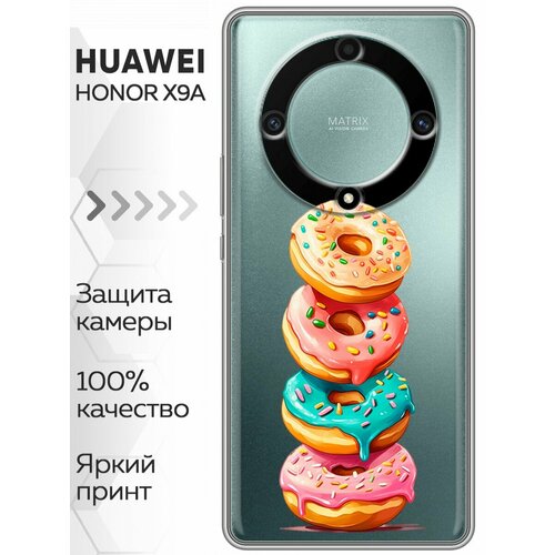 Полупрозрачный дизайнерский силиконовый чехол для Хонор Х9а / Huawei Honor X9a Пончики