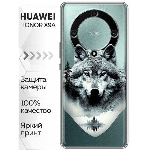Полупрозрачный дизайнерский силиконовый чехол для Хонор Х9а / Huawei Honor X9a Волк