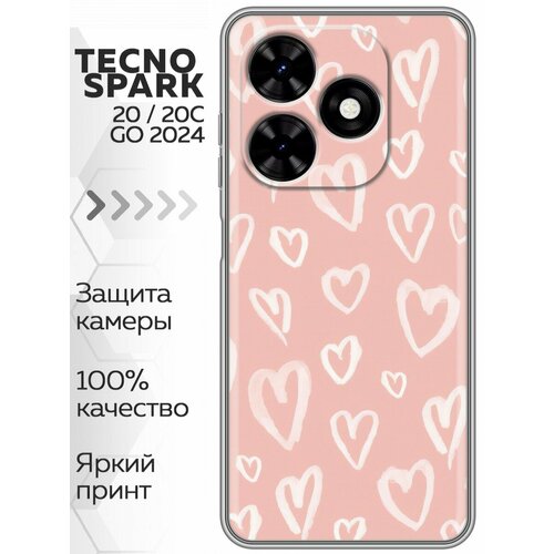 Чехол для Tecno Spark Go 2024, Spark 20, 20C, Pop 8 Сердечки розовые (Техно Спарк Го 2024, Спарк 20, 20С, Поп 8)