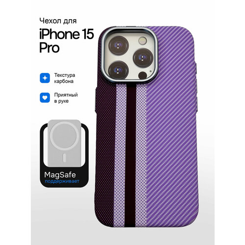 Чехол на Айфон 15 Pro, ударопрочный, карбоновый, с поддержкой беспроводной зарядки MagSafe