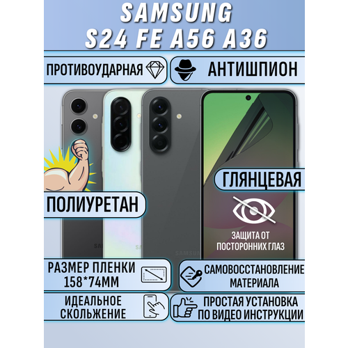 Гидрогелевая пленка для Samsung S24 FE A56 A36 антишпион глянцевая на весь экран 1 шт