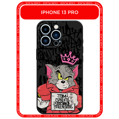 Черный матовый чехол на Apple iPhone 13 Pro / Айфон 13 Про с принтом Том и граффити