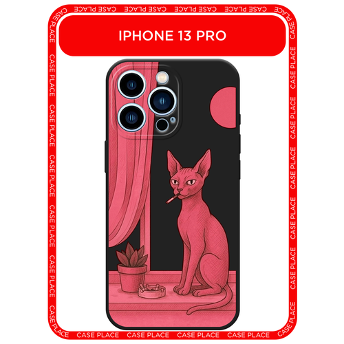 Черный матовый чехол на Apple iPhone 13 Pro / Айфон 13 Про с принтом Розовый сфинкс