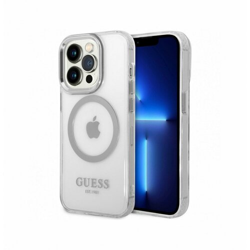 Чехол Guess PC/TPU Metal outline Hard (MagSafe) для iPhone 14 Pro Max, цвет Прозрачный/Серебристый (GUHMP14XHTRMS)