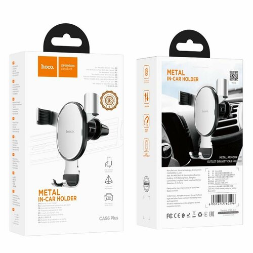 Автомобильный держатель HOCO CA56 Plus Armore, 4,5-6,7", чёрный/серебро (110)