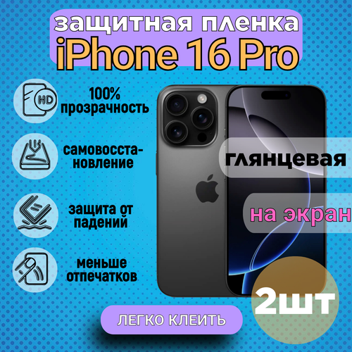 Комплект 2 шт. Гидрогелевая полиуретановая защитная пленка для iPhone 16 Pro, глянцевая