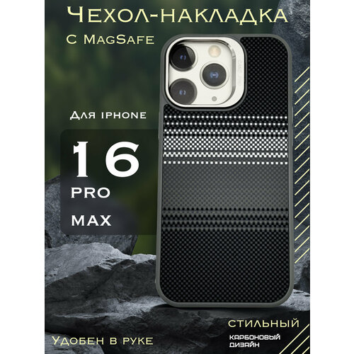 Чехол-накладка на Айфон 16 Pro Max c подставкой, ударопрочный, карбоновый, с поддержкой беспроводной зарядки MagSafe