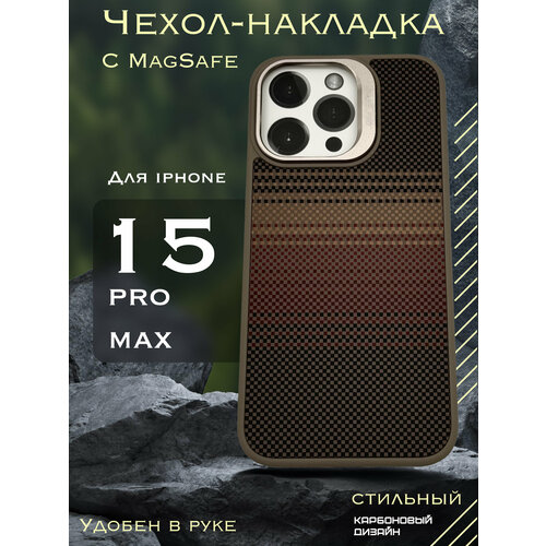 Чехол-накладка на Айфон 15 Pro Max c подставкой, ударопрочный, карбоновый, с поддержкой беспроводной зарядки MagSafe