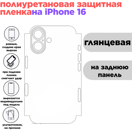 Задняя панель. Гидрогелевая полиуретановая защитная пленка для iPhone 16, глянцевая