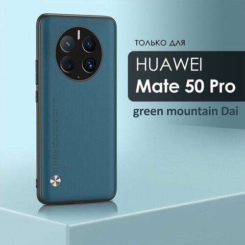 Чехол экокожа на Huawei Mate 50 Pro (Хуавей Мэйт 50 Про) премиум, цвет сине-зеленый