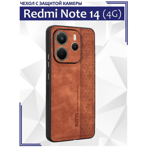 Чехол для Xiaomi Redmi Note 14 (4G) кожаный с тиснением / Сяоми Редми Ноут 14 4G с защитой камеры (коричневая)