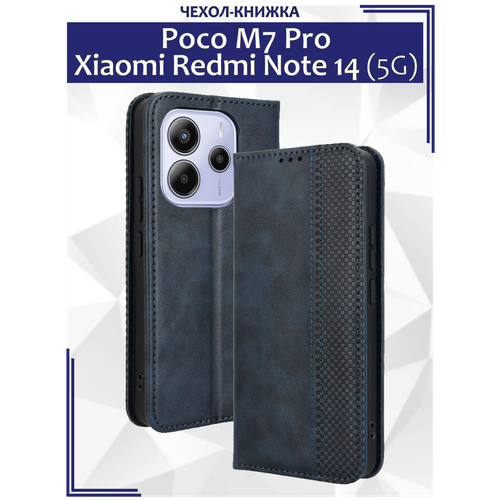 Чехол книжка для Poco M7 Pro/ Xiaomi Redmi Note 14 (5G) с магнитом и отделением под карты / Поко М7 Про, Редми Ноут 14 5G (синяя)