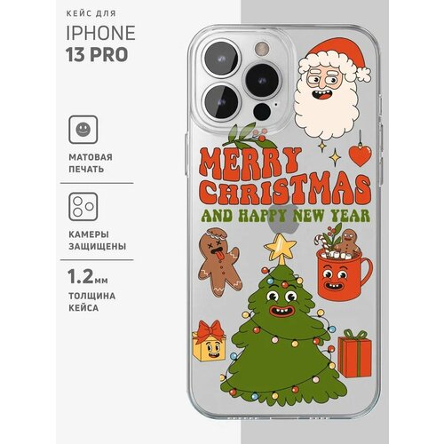 Чехол на iPhone 13 Pro / Айфон 13 Про прозрачный с принтом "Merry Christmas"