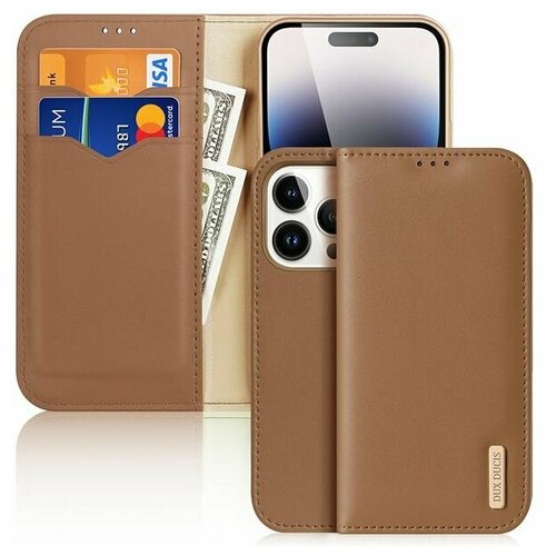 Чехол бумажник из натуральной кожи Dux Ducis для iPhone 14 Pro 6.1" Hivo series