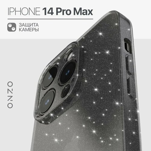Чехол на iPhone 14 Pro Max / Айфон 14 Про Макс, темно-прозрачный блестящий