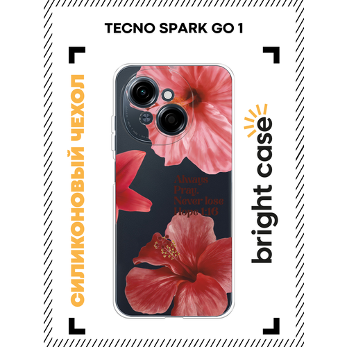 Чехол на Tecno Spark Go 1/Pop 9 / Текно Спарк Го 1/Поп 9 с принтом Красные цветы, прозрачный