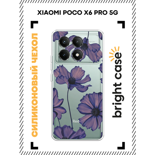 Чехол на Xiaomi Poco X6 PRO 5G / Поко X6 Про 5G с принтом Фиолетовые космеи, прозрачный