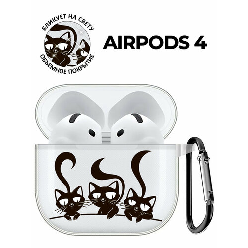 Чехол на Apple AirPods 4 с принтом "Три кошечки" прозрачный