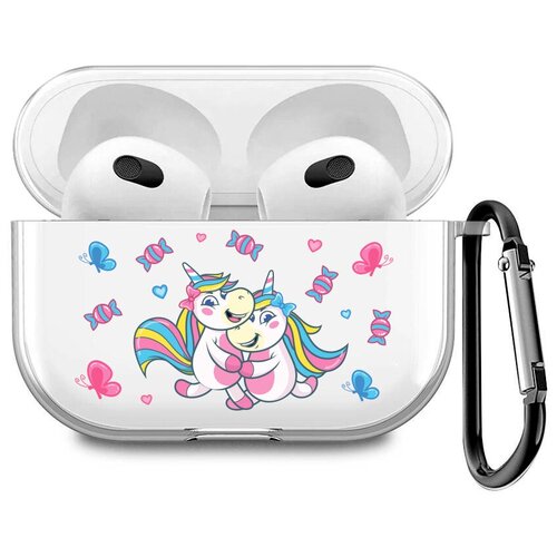 Силиконовый прозрачный чехол для наушников Air Pods 3 (на Аир Подс 3) с 3D принтом "Unicorn and candy"