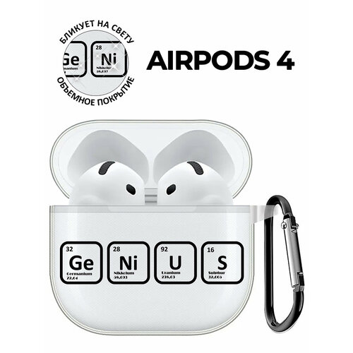 Чехол на Apple AirPods 4 с принтом "Гений" прозрачный