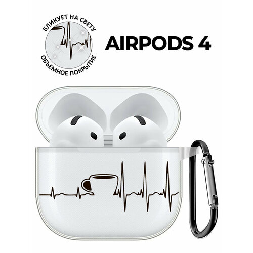 Чехол на Apple AirPods 4 с принтом "Кардиограмма кофе" прозрачный