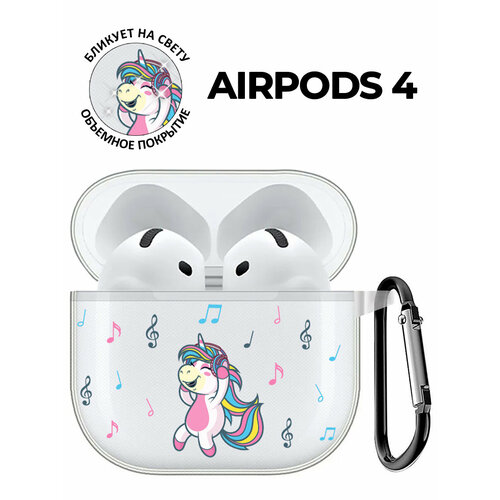 Чехол на Apple AirPods 4 с принтом "Musical Unicorn" прозрачный