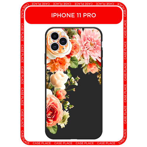 Черный матовый чехол на Apple iPhone 11 Pro / Айфон 11 Про с принтом Большой букет угол