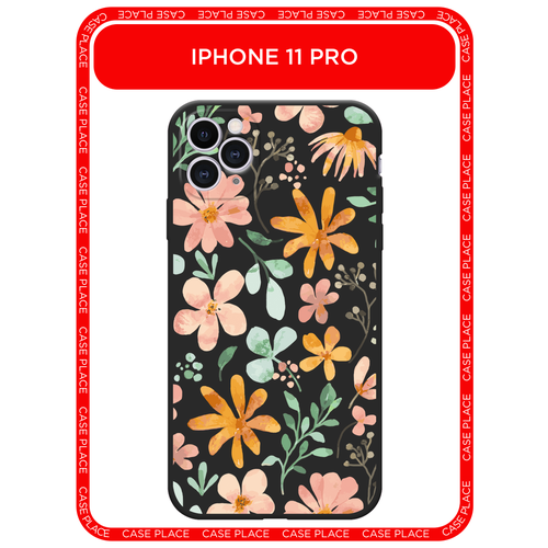 Черный матовый чехол на Apple iPhone 11 Pro / Айфон 11 Про с принтом Полевые цветы