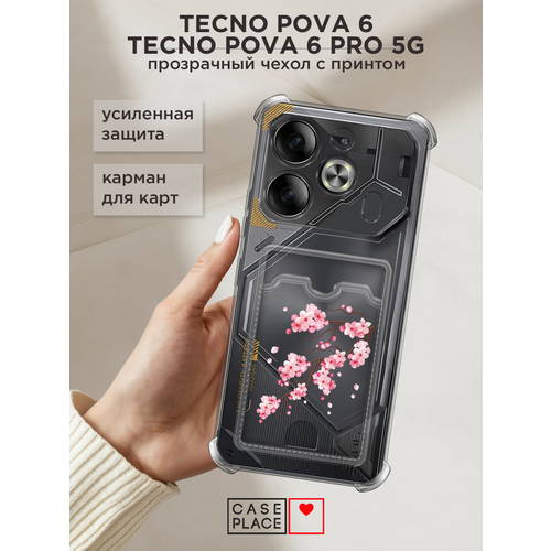Чехол на Tecno Pova 6/6 Pro 5G (Текно Пова 6/6 Про) с картой и принтом Ветка сакуры