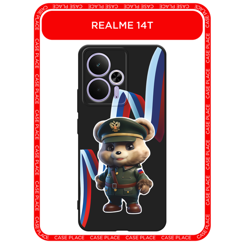 Черный матовый чехол на Realme 14T / Реалми 14Т с принтом Мишка в форме 4