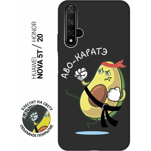 Матовый Soft Touch силиконовый чехол на Honor 20, Huawei Nova 5T, Хонор 20, Хуавей Нова 5Т с 3D принтом "Avo-Karate" черный матовый