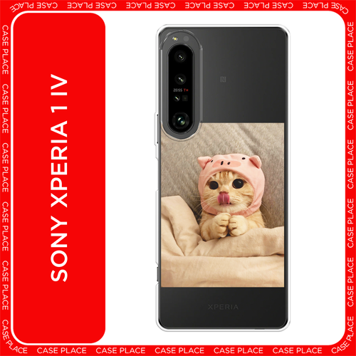 Чехол на Sony Xperia 1 IV / Сони Иксперия 1 IV с принтом Котик в розовой шапочке, прозрачный