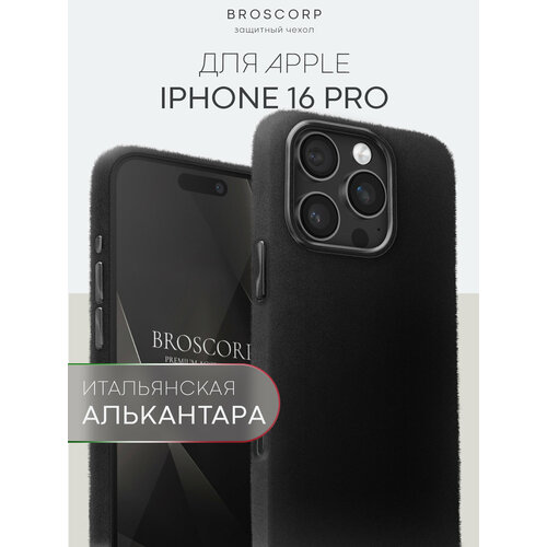 Премиальный чехол BROSCORP на Apple iPhone 16 Pro (Айфон 16 Про), защита камер, алькантара