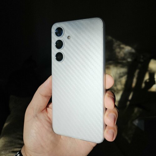 Ультратонкий карбоновый чехол на Samsung Galaxy S25 Plus белый / Накладка полупрозрачная для Самсунг S25+ с защитой камеры