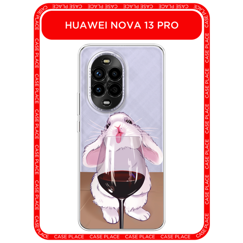 Чехол на Huawei Nova 13 Pro / Хуавей Нова 13 Про с принтом Кролик облизывает бокал, прозрачный